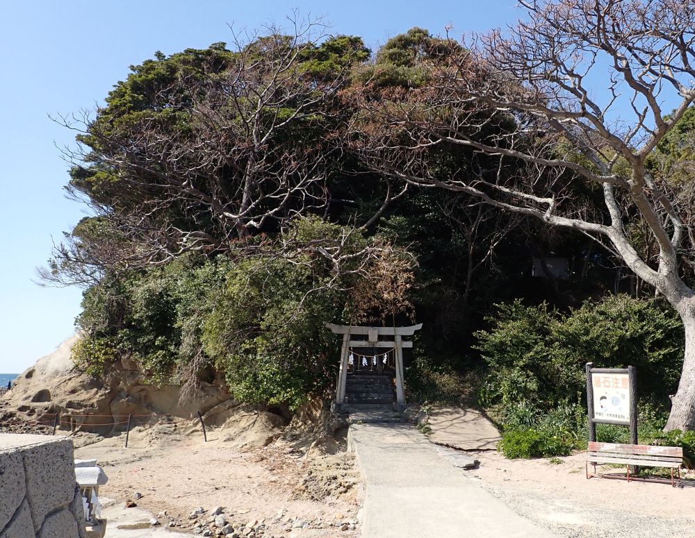 2つの岩山をつないでいる岩場は、満潮時にしばらく水没しますが、大半の時間は渡ることができます。