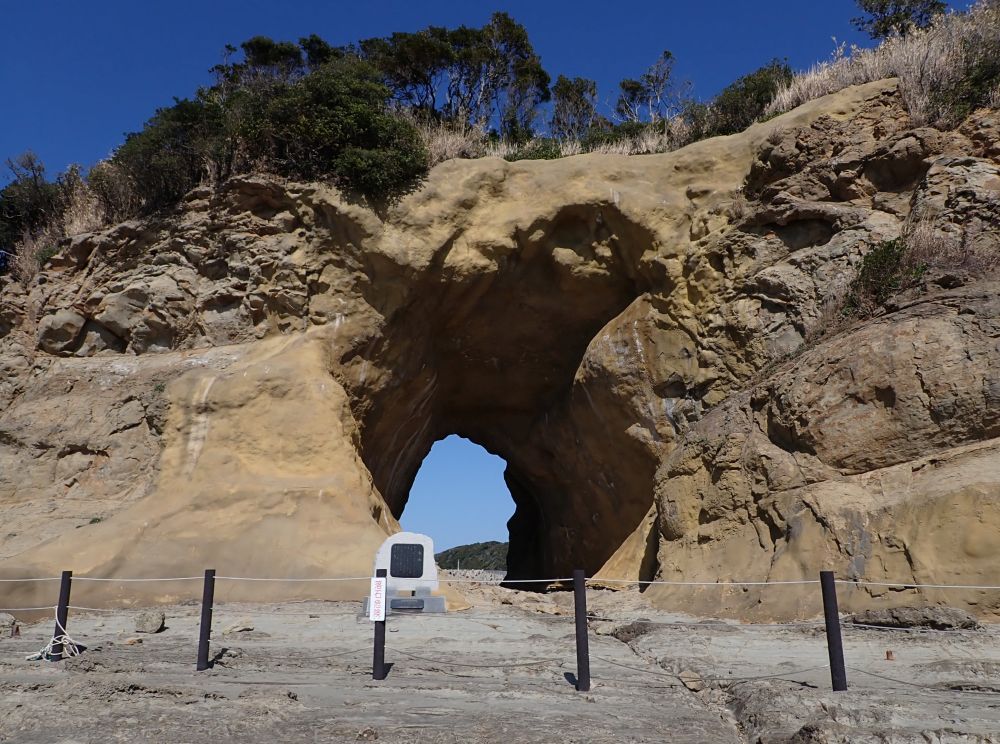 その昔、神功皇后が戦いに行く途中、芦屋に立ち寄り、必勝を誓って矢を射ると、矢は小島を貫通し、その穴が大きくなって洞穴になったという昔話があります。