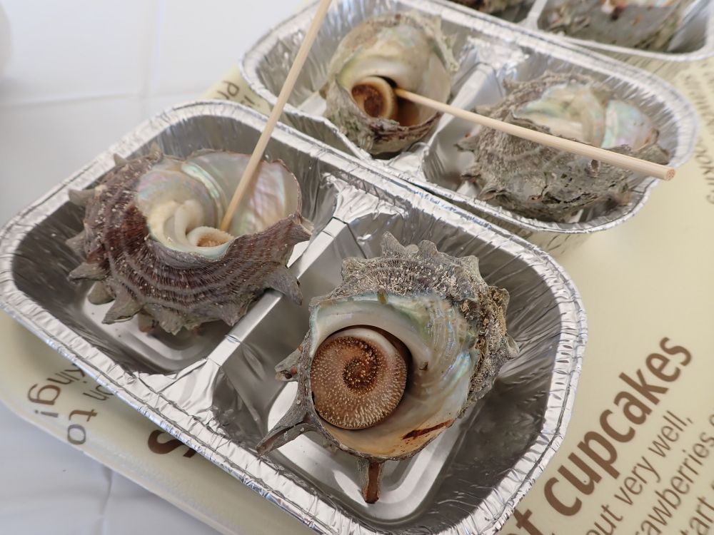 焼きそば(麺少なめ具多め)1つ100円、サザエのつぼ焼き2つ100円と、かなり破格なとんでもない値段設定になっています。